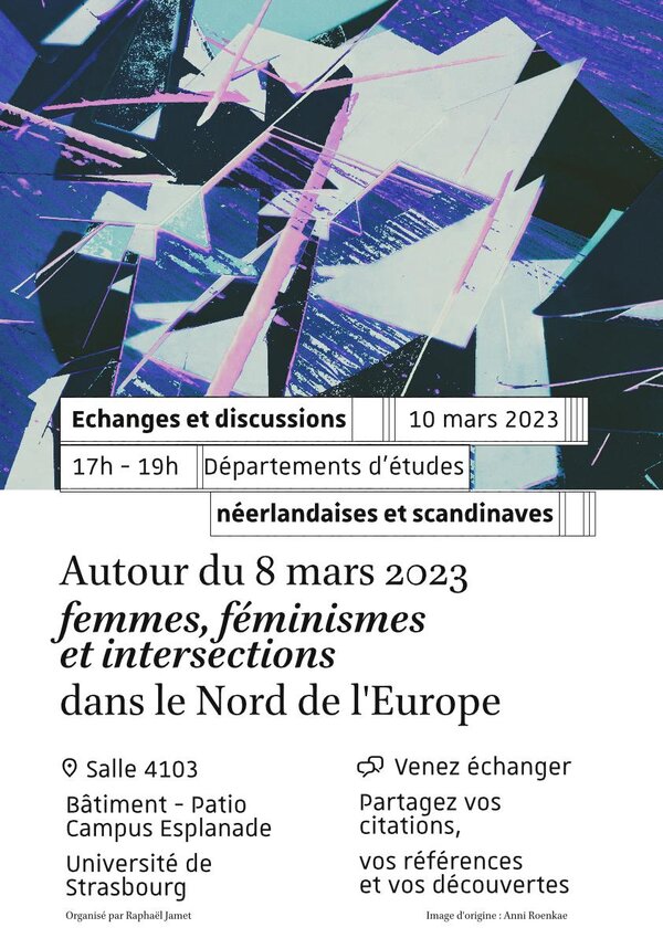 Le 10 mars 2023, à l'occasion de la journée internationale de lutte pour les droits des femmes du 8 mars, les départements d'études néerlandaises et scandinaves organisent un temps d'échange (de 17h à 19h en 4103 au Patio) sur les thèmes des femmes, féminismes et des questions d'intersections que…
